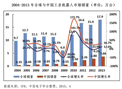 進入21世紀以來,全球制造業(yè)正在向自動化、集成化、智能化、綠色化方向發(fā)展。作為智能制造的主力軍,工業(yè)機器人不斷從汽車制造領(lǐng)域向機械、建材、物流、食品乃至航空、航天、船舶制造等領(lǐng)域滲透。智能技術(shù)與社會生產(chǎn)、生活相結(jié)合,還催生了可從事修理、運輸、清洗、保安、救援、監(jiān)護等工作的服務(wù)機器人和特種機器人?!皺C器人革命”有望成為“第三次工業(yè)革命”的一個切入點和重要增長點,將影響全球制造業(yè)格局。國際機器人聯(lián)合會(IFR)預(yù)測:“機器人革命”將創(chuàng)造數(shù)萬億美元的市場,從而帶動與機器人相關(guān)的新材料功能模塊、感知獲取與識別、智能控制與導(dǎo)航等關(guān)鍵技術(shù)與市場快速發(fā)展。
