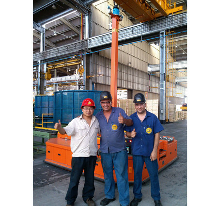 巴西AGV出口項(xiàng)目的圓滿實(shí)施,是昆船公司AGV系統(tǒng)首次走出國門、走向世界的一大精品工程,飽含著昆船人不斷做大做強(qiáng)做優(yōu)昆船AGV系統(tǒng)的滿滿期許。這次出口到巴西TERMOMECANICA SAO PAULOS.A.公司的3臺(tái)激光導(dǎo)引輥道式全方位型AGV高3.5米,長寬都達(dá)到3米,載重量為3噸,是目前昆船制造的體積最大的AGV。另外,這3臺(tái)AGV采用了新型推挽機(jī)構(gòu),可分別控制兩級(jí)推挽力,使推挽行程達(dá)到3.5米。