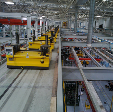 2012年8月,由昆船自主研制的磁帶導(dǎo)引單輪驅(qū)動裝配型AGV車橋裝配生產(chǎn)線在中國重汽集團(tuán)濟(jì)南橋箱有限公司順利通過驗收,正式投入運(yùn)行,成為國內(nèi)首條正式投入運(yùn)行的AGV車橋裝配生產(chǎn)線。