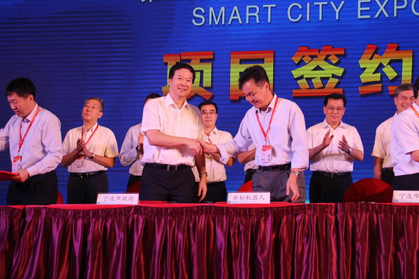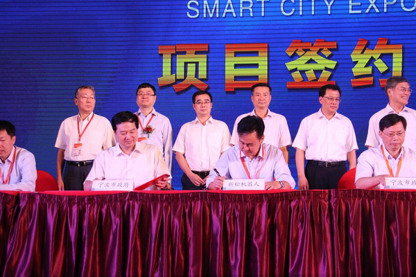 9月11日,第五屆中國智慧城市技術(shù)與應(yīng)用產(chǎn)品博覽會(huì)項(xiàng)目簽約儀式在寧波泛太平洋酒店隆重舉行,簽約儀式上,新松機(jī)器人同寧波市人民政府正式簽署戰(zhàn)略合作協(xié)議,雙方將以機(jī)器換人、智慧制造項(xiàng)目合作為基礎(chǔ),培育機(jī)器人和智能裝備產(chǎn)業(yè),完善自動(dòng)化裝備研發(fā)、應(yīng)用、服務(wù)的產(chǎn)業(yè)鏈配套協(xié)作機(jī)制,致力于提升寧波裝備制造業(yè)核心競爭力,將寧波打造成為國內(nèi)機(jī)器換人、自動(dòng)化裝備、智能制造相關(guān)領(lǐng)域的戰(zhàn)略高地,引領(lǐng)促進(jìn)行業(yè)發(fā)展。