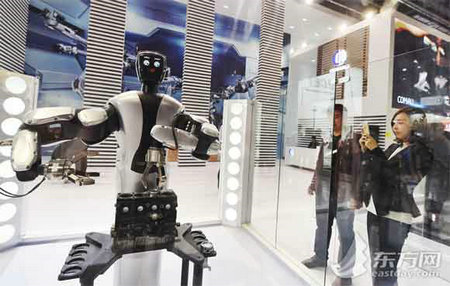 第十七屆中國國際工業(yè)博覽會(簡稱2015工博會)今天上午正式開幕。在國務(wù)院發(fā)布“中國制造2025”戰(zhàn)略的大背景下,智能制造當(dāng)仁不讓成為本屆展會的最大亮點。作為智能制造領(lǐng)域的核心,“機器人軍團”“扎堆”亮相,勾畫出未來制造業(yè)的發(fā)展圖景。