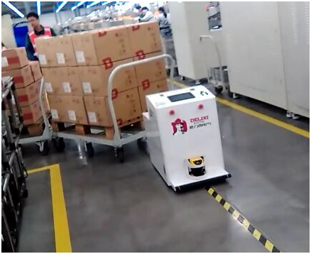 經(jīng)過智久團隊的加班加點,智久AGV機器人終于在15天完成,出現(xiàn)在了德力西電氣有限公司的工廠里。