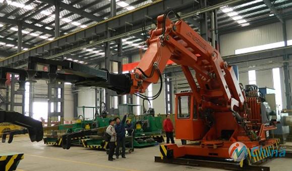 青島華東工程機(jī)械有限公司研制的全液壓重載機(jī)器人如圖所示。其大跨度的承載可達(dá)到2000kg,機(jī)器人的活動(dòng)半徑可達(dá)到近6m,應(yīng)用在鑄鍛行業(yè)。