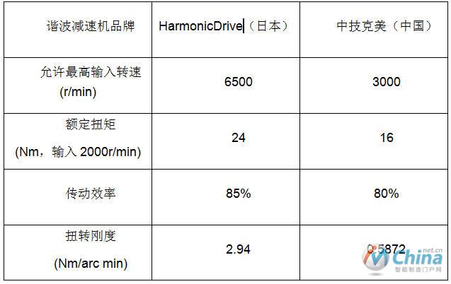 國內(nèi)外工業(yè)機器人主流高精度諧波減速機性能比較如下表所示。