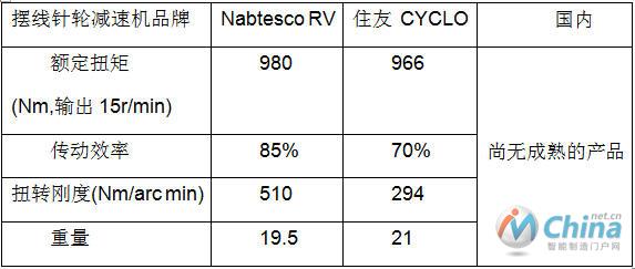 國內(nèi)外工業(yè)機器人主流高精度擺線針輪減速機性能比較如下表所示。