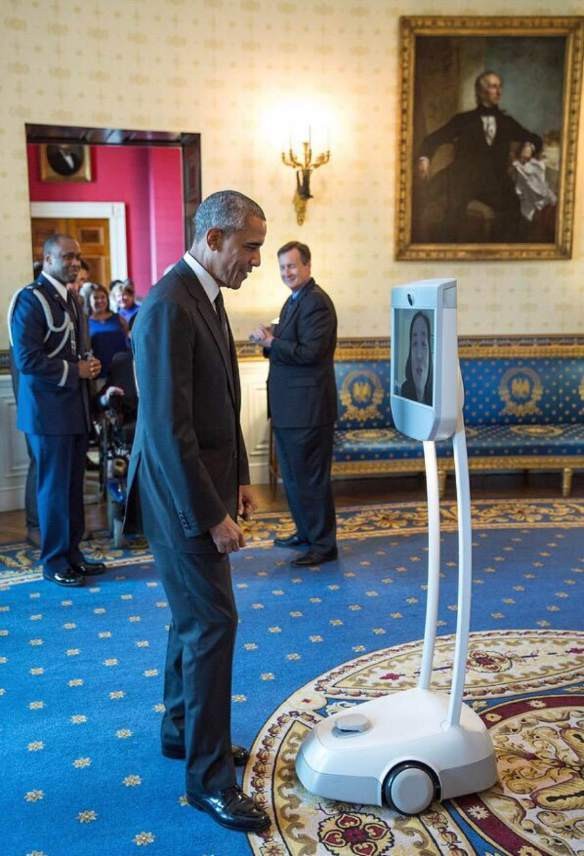 美國總統(tǒng)奧巴馬在白宮體驗(yàn)BEAM機(jī)器人