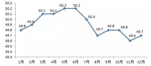 圖表 2:2015年中國中國制造業(yè)采購經(jīng)理指數(shù)(PMI)情況(單位:%)