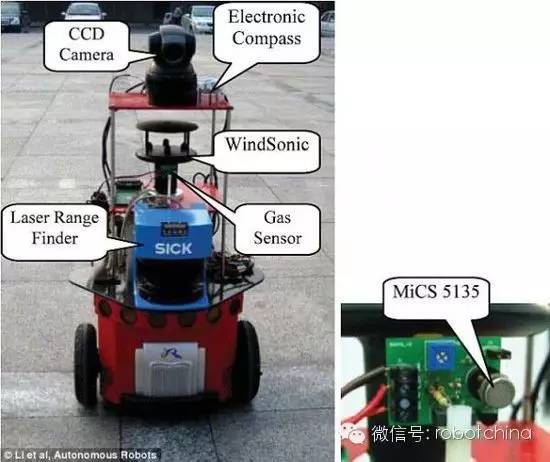 天津大學的研究人員發(fā)明的一個氣味檢測機器人,能夠通過新的、基于粒子濾波器的氣味源定位算法對空氣中的氣體成分進行分析,并最終找到氣體的來源。
