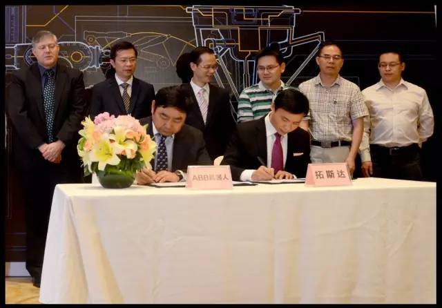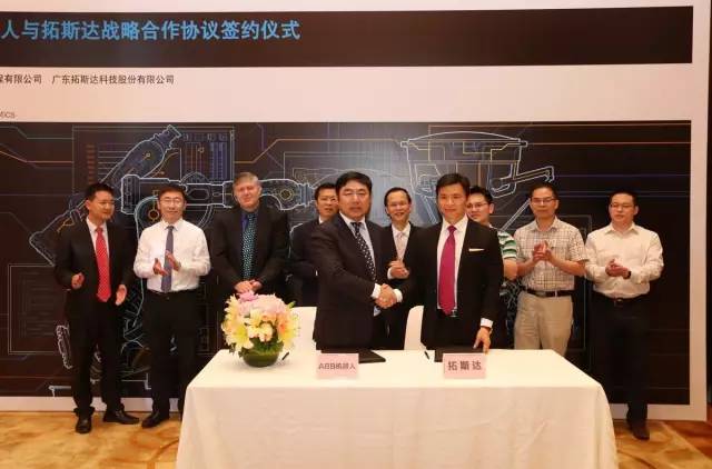 2016年4月28日上午,拓斯達(dá)與機(jī)器人四大國(guó)際巨頭之一的ABB,在東莞松山湖凱悅酒店舉行戰(zhàn)略合作協(xié)議簽約儀式。