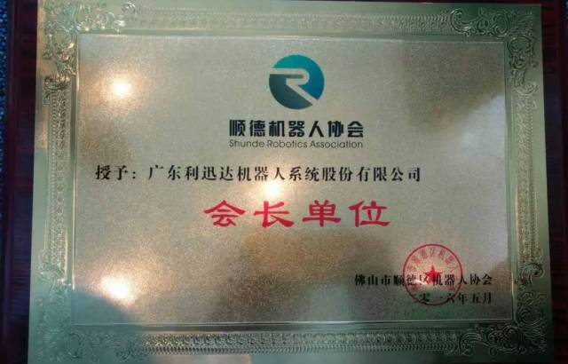 與會會員單位代表全體審議通過《佛山市順德區(qū)機器人協(xié)會章程》,選舉產(chǎn)生第一屆理事會,利迅達機器人為協(xié)會第一屆理事會會長單位,由公司董事長霍錦添任協(xié)會會長。會議當(dāng)天,舉行了隆重的揭牌儀式,發(fā)布了《機器人行業(yè)及協(xié)會發(fā)展規(guī)劃報告》。廣東省機器人協(xié)會執(zhí)行會長任玉桐、順德區(qū)經(jīng)科局常務(wù)副局長張鵬為大會的成功召開發(fā)表賀辭。