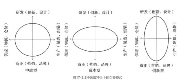 泰勒的科學(xué)管理和大規(guī)模生產(chǎn)就是在這樣的時(shí)代背景下產(chǎn)生的。隨著工業(yè)發(fā)達(dá)程度的提升,在供大于求的年代,能高效率、低成本地制造和供應(yīng)產(chǎn)品的能力決定了競(jìng)爭(zhēng)力。精益生產(chǎn)就是在這樣的時(shí)代背景下產(chǎn)生的。隨著工業(yè)的進(jìn)一步發(fā)展,在物質(zhì)極大豐富的年代,人類開始追求差異化和個(gè)性化,產(chǎn)品研發(fā)和商業(yè)模式的創(chuàng)新能力決定了競(jìng)爭(zhēng)力。最反映這個(gè)特征的是“微笑曲線”(Smiling Curve)模型,如圖17-1所示。