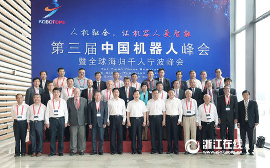 第三屆中國機器人峰會暨全球海歸千人寧波峰會13日上午在余姚開幕。省委書記、省人大常委會主任夏寶龍出席開幕式,看望了出席峰會的中外專家,參觀了智能機器人展示。