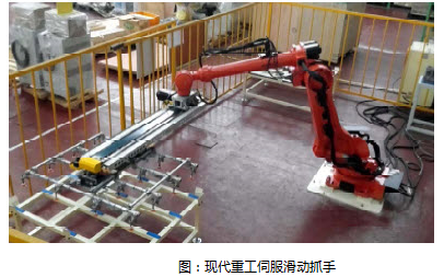 此套系統(tǒng)采用最可靠最高性價比的大型機器人HS180配置伺服滑動抓手,擴大了沖壓搬運機器人的工作域為最大跨度為8.5米,此套設備不僅通過高速滑動提高產(chǎn)能,且減少占地面積提高了空間利用率。