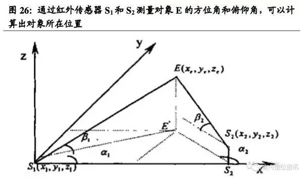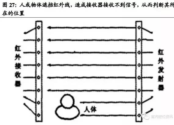 12、超寬紅外定位技術:成本高,用于軍事、高級別安防紅外定位主要有兩種具體實現(xiàn)方法,一種是將定位對象附上一個會發(fā)射紅外線的電子標簽,通過室內安放的多個紅外傳感器測量信號源的距離或角度,從而計算出對象所在的位臵。