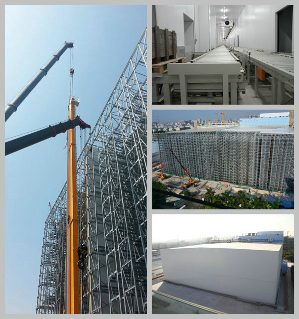 本項目采用庫架合一的自動化立體冷庫,占地22000平方米,高度45米,溫控空間40萬平方米,溫度控制在-25°C到-18°C。并配備16臺巷道堆垛機、7萬個貨位,是目前國內(nèi)最高、單體最大的自動化立體倉庫,也是世界上最先進的低溫冷庫之一。
