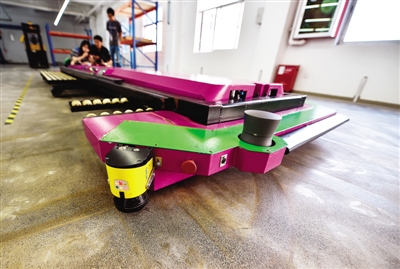 7月15日,在深圳怡豐機(jī)器人科技有限公司,“激光導(dǎo)航+梳齒交換”式汽車搬運(yùn)AGV機(jī)器人準(zhǔn)備搬運(yùn)汽車。