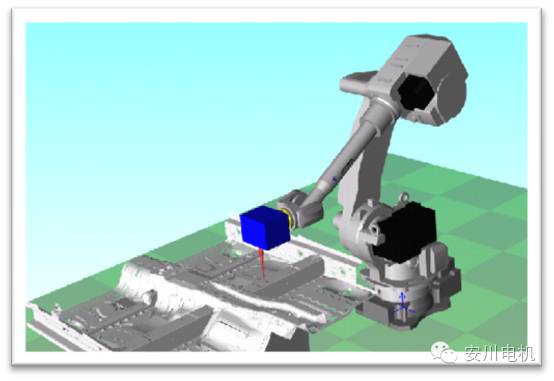 通過ON-THE-FLY,大幅度提高汽車車身制造工藝效率,且焊接效果卓越。所謂“ON-THE-FLY飛行焊接”就是采用安川(YE DATA)生產(chǎn)的激光頭,實現(xiàn)了在機器人移動過程中,一邊控制激光頭的位置,邊進行激光焊接的作業(yè)。