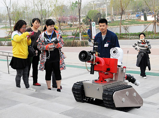 由開誠智能自主研發(fā)生產(chǎn)的消防機(jī)器人、排爆機(jī)器人、水下機(jī)器人等12臺(tái)特種機(jī)器人走進(jìn)2016唐山世界園藝博覽會(huì),承擔(dān)世園會(huì)的消防保衛(wèi)任務(wù)。機(jī)器人分布在指揮中心、低碳生活館、熱帶植物館、綜合展示中心、大劇院、影視基地、規(guī)劃展覽館。