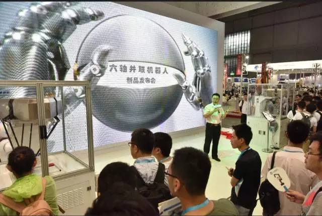 今天,中國國際機器人展在國家會展中心(上海)3號館舉行,新松公司攜工業(yè)機器人、服務機器人、智能3D打印設備等多個領域新品及行業(yè)領先的系統(tǒng)解決方案盛裝亮相,六軸并聯(lián)機器人全新發(fā)布,成為了整個展會的亮點。