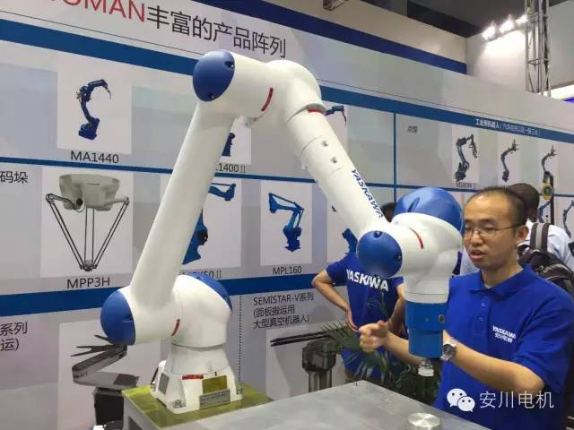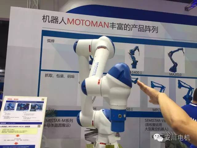 剛到安川展臺,就被一對萌萌噠機器人吸引了。瞧著兩個小可愛,可不是在對你說“kou ni qi wa”嘛!