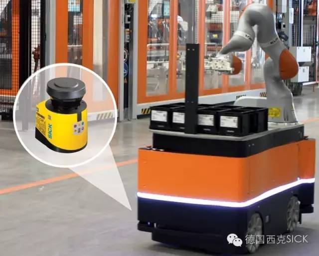 多年以來(lái),庫(kù)卡公司在其重載型平臺(tái)Om-niMove上一直采用SICK 的長(zhǎng)距離安全激光掃描儀,負(fù)載能力高達(dá) 90 噸的叉車(chē)的運(yùn)用是建立在SICK安全激光掃描器S3000與庫(kù)卡導(dǎo)航軟件之間相互配合的基礎(chǔ)上。當(dāng)庫(kù)卡KMR iiwa 機(jī)器人面世后,考慮到機(jī)械安裝位置以及行走路徑多區(qū)域的全方位保護(hù)要求,使用了SICK公司兩臺(tái)緊湊型安全激光掃描器 S300, 270°的掃描角度安裝于車(chē)體對(duì)角可實(shí)現(xiàn)全方位監(jiān),同時(shí)具有 16 個(gè)可自由配置保護(hù)區(qū)域,能夠靈活匹配不同的行駛路徑進(jìn)行相應(yīng)的切換。對(duì)移動(dòng)機(jī)器人的另一個(gè)應(yīng)用要求是,需要堅(jiān)固性外殼設(shè)計(jì)以及低能耗要求,S300在待機(jī)狀態(tài)功耗僅為5W,為業(yè)界最低。