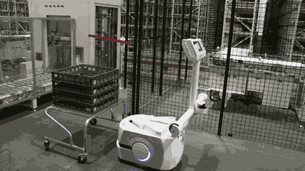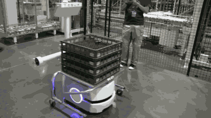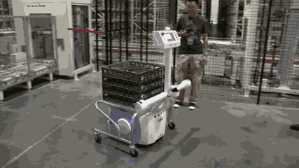 特斯拉電池工廠的這款小型機(jī)器人主要被用來(lái)運(yùn)輸不同工作站里的材料。