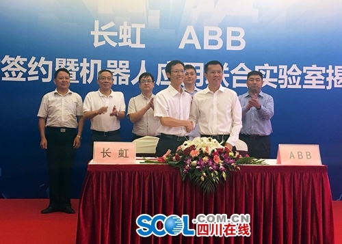 8月16日,“長(zhǎng)虹-ABB 戰(zhàn)略合作簽約暨機(jī)器人應(yīng)用聯(lián)合實(shí)驗(yàn)室揭牌儀式”在中國(guó)科技城綿陽(yáng)舉行,雙方將圍繞工業(yè)機(jī)器人領(lǐng)域,在應(yīng)用開(kāi)發(fā)、生產(chǎn)、系統(tǒng)集成等方面開(kāi)展深度合作,互享優(yōu)質(zhì)資源,共同開(kāi)發(fā)中國(guó)市場(chǎng),標(biāo)志著長(zhǎng)虹正式進(jìn)軍工業(yè)機(jī)器人領(lǐng)域。