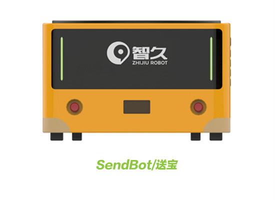 運(yùn)動(dòng)選手:SendBot/送寶(搬運(yùn)機(jī)器人),是一種使用磁條導(dǎo)引的黃色方形工業(yè)機(jī)器人。