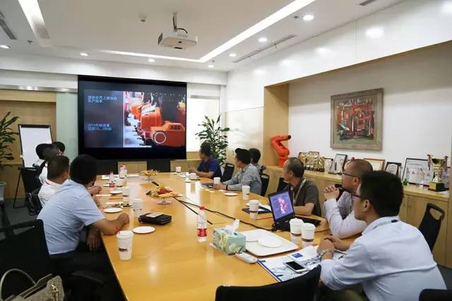 在上海ABB工程有限公司總裁(ABB機(jī)器人中國區(qū)負(fù)責(zé)人)李剛、機(jī)器人與應(yīng)用銷售總監(jiān)鄧奇、ABB中國區(qū)包裝事業(yè)部總經(jīng)理高一平等領(lǐng)導(dǎo)的陪同下,意歐斯董事長姜躍君、董事長特別助理黃安妮、董事會(huì)秘書朱霞敏、市場總監(jiān)鄭瑛及松盛總經(jīng)理李強(qiáng)、運(yùn)營總監(jiān)劉小軍等一行參觀了ABB機(jī)器人生產(chǎn)車間及應(yīng)用測試實(shí)驗(yàn)室,對ABB在機(jī)器人領(lǐng)域強(qiáng)大的研發(fā)及制造能力深為嘆服。