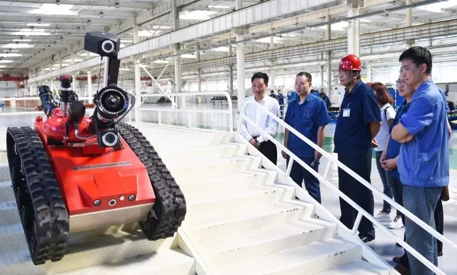 中信重工董事長(zhǎng)俞章法、總經(jīng)理王春民視察現(xiàn)場(chǎng),要求公司機(jī)器人生產(chǎn)團(tuán)隊(duì)把質(zhì)量放在第一位,以過(guò)硬的產(chǎn)品打造特種機(jī)器人領(lǐng)域的中信重工品牌。