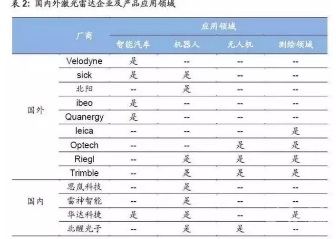 激光雷達的下游應(yīng)用領(lǐng)域核心是無人駕駛汽車、服務(wù)機器人、無人機和工業(yè)測繪領(lǐng)域等。從目前全球激光雷達企業(yè)的下游應(yīng)用領(lǐng)域分布來看,居多的仍然是智能汽車和機器人領(lǐng)域,傳統(tǒng)的測繪領(lǐng)域中,也有一批3D激光掃描儀的企業(yè),轉(zhuǎn)型向更具成長性的機器人和無人駕駛領(lǐng)域。