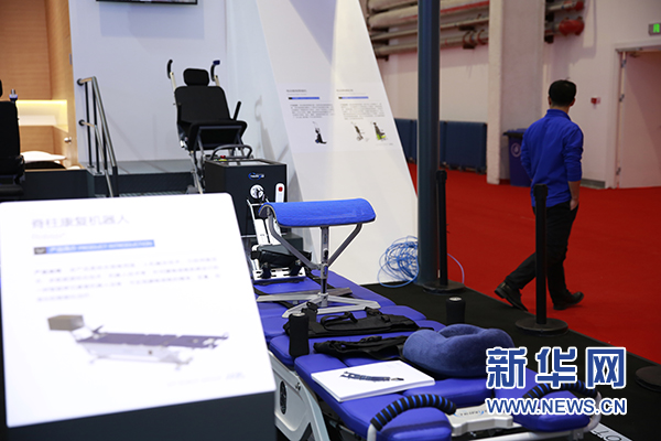展區(qū)內的哈工大載物爬樓機器人和脊柱康復機器人。 (新華網 魯聃玉文攝)