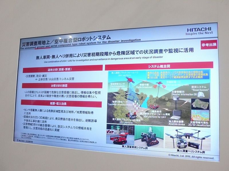 機(jī)器人系統(tǒng)與無人車輛和無人直升機(jī)進(jìn)行災(zāi)害調(diào)查,從災(zāi)害初期階段便能對危險區(qū)域的狀況進(jìn)行調(diào)查和監(jiān)視,對受災(zāi)地點(diǎn)進(jìn)行3D地形掃描等輔助手動提供搶險規(guī)劃,人們不必站在危險區(qū)域內(nèi)就能夠?qū)?zāi)區(qū)進(jìn)行實(shí)況分析。
