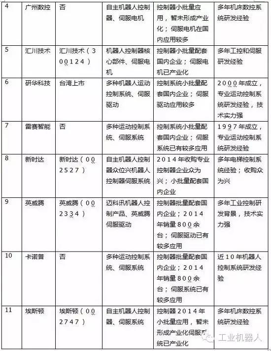 圖表8:國內(nèi)主要控制器、伺服電機(jī)研發(fā)和生產(chǎn)企業(yè)