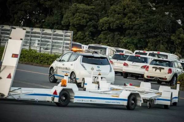 該系統(tǒng)由具備自動駕駛功能的電動車“日產(chǎn)聆風”為原型的牽引車和底座構成,每次最多可以無人搬運3臺整車。