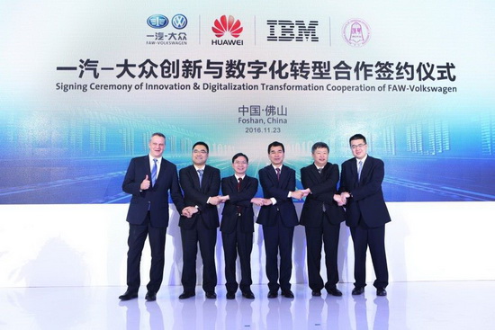 2016年11月23日,一汽-大眾汽車有限公司(以下簡稱一汽-大眾)攜手國際商業(yè)機(jī)器(中國)有限公司(以下簡稱IB+M)、華為技術(shù)有限公司(以下簡稱華為)、深圳清華大學(xué)研究院控股的力合科創(chuàng)集團(tuán)有限公司(以下簡稱清華大學(xué)研究院)在一汽-大眾華南基地正式簽署《創(chuàng)新與數(shù)字化轉(zhuǎn)型戰(zhàn)略合作協(xié)議》。一汽-大眾也成為國內(nèi)汽車行業(yè)首家同時(shí)與三家信息科技公司合作,攜手開展技術(shù)創(chuàng)新和業(yè)務(wù)轉(zhuǎn)型的汽車企業(yè)。
