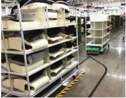 目前,座椅武漢工廠的佳順AGV小車主要工作在整椅生產(chǎn)線,代替原來的小火車和人工拖運(yùn)形式,進(jìn)行座椅生產(chǎn)物料的運(yùn)輸。它的加入,作為工廠積極推行數(shù)字化企業(yè)項(xiàng)目的一大成果,大大改善了工廠的物料運(yùn)輸情況。