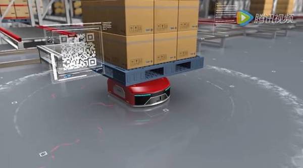 無人倉中有大量貌似“掃地機(jī)”的機(jī)器人托著料箱有條不紊地忙碌著,這種AGV(自動(dòng)導(dǎo)引小車)可通過地上的二維碼定位進(jìn)行導(dǎo)航,并結(jié)合系統(tǒng)的調(diào)度,實(shí)現(xiàn)了整個(gè)倉庫的合理安排生產(chǎn)。相較于傳統(tǒng)的輸送線的搬運(yùn)方案,通過AGV實(shí)現(xiàn)“貨到機(jī)器人”的方式具有更高的靈活性。