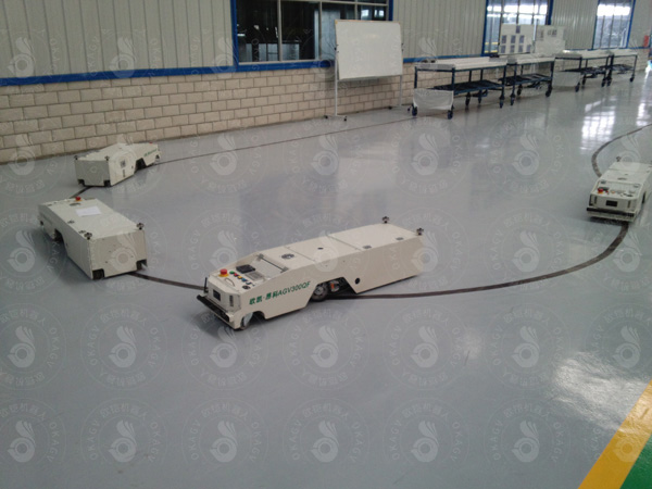 深圳市歐鎧機(jī)器人有限公司在多臺(tái)智能AGV搬運(yùn)機(jī)器人協(xié)同導(dǎo)引方面取得了創(chuàng)新突破,實(shí)現(xiàn)了多臺(tái)AGV的同步協(xié)調(diào)運(yùn)動(dòng)控制,完成合作搬運(yùn)物流,提高裝配操作的準(zhǔn)確度和快速性。通過AGV中央控制系統(tǒng)信息中特征匹配共享主AGV指令,通過算法獲得主AGV的定位信息,從而實(shí)現(xiàn)跟蹤控制,獲得多臺(tái)AGV的協(xié)調(diào)運(yùn)動(dòng)控制。