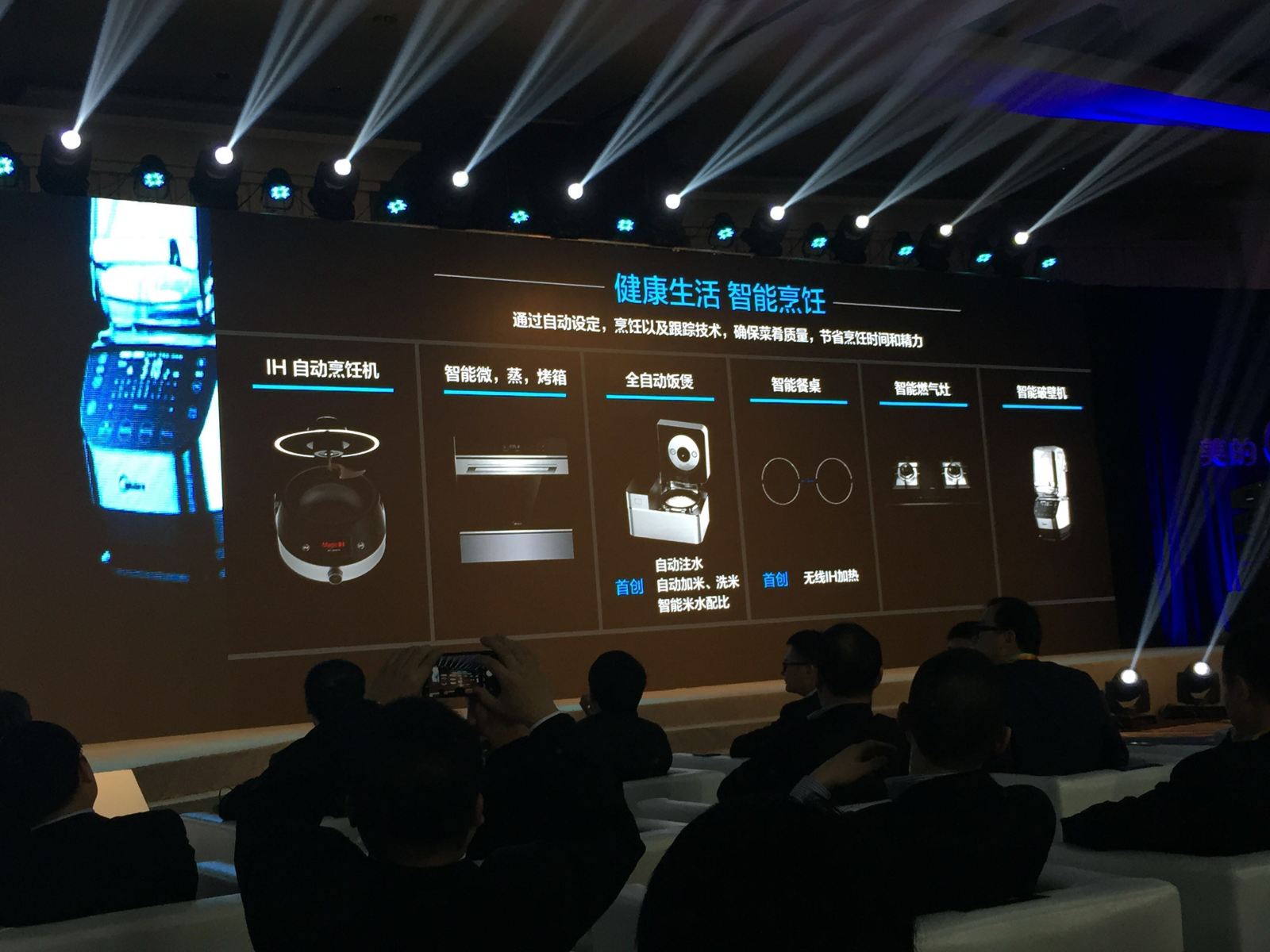 在2017AWE(中國家電及消費(fèi)電子博覽會)開幕前一天的3月8日,美的集團(tuán)首次攜手庫卡機(jī)器人在國內(nèi)公開亮相。在發(fā)布會上,美的還展示了可用智能語音控制的未來廚房。