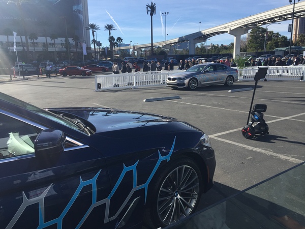 1月5日,賽格威機器人Segway亮相CES 2017大會,作為寶馬自駕區(qū)的合作展商,這款名叫Loomo(路萌)的“泊車助理”其表現(xiàn)的確令人眼前一亮。據(jù)了解,“路萌”有著一張13英寸“臉”,不僅會輔助泊車,還會自動“出門迎客”。當天,寶馬使用了自家的5系自動駕駛汽車與“路萌”在展區(qū)進行了搭檔演示:當汽車即將進入泊車階段時,“路萌”就會通過車載屏幕遠程通知車內(nèi)乘客“前方有機器人前來迎接和引導”,并隨即自動駛到汽車面前。