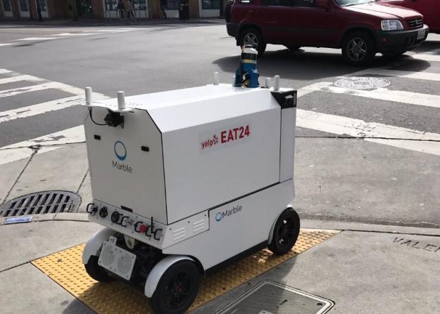 近日,舊金山的街道上出現(xiàn)了一款送餐機(jī)器人。它的形狀與廂式貨車差不多,只是沒有車頭,只有車箱和四個(gè)輪子。車廂上印著“Yelp”和“Eat24”的Logo,原來是美國點(diǎn)評(píng)網(wǎng)站Yelp旗下外賣服務(wù)Eat24正在測(cè)試機(jī)器人送餐服務(wù)。
