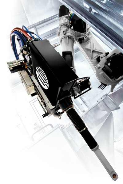 PTWA(Plasma Transferred Wire Arc,線材等離子電弧噴涂)技術(shù)是利用熱噴涂層法以極高的速度對(duì)鋁制汽缸內(nèi)孔細(xì)密地噴涂鋼液微粒??埋RSmart Spray系統(tǒng)化鋁制發(fā)動(dòng)機(jī)缸體為一個(gè)整體。這不僅減輕了發(fā)動(dòng)機(jī)的最終重量,而且提高其耐久性,降低能耗。根據(jù)生產(chǎn)線的需要,本系統(tǒng)可用于一臺(tái)或者兩臺(tái)機(jī)器人。