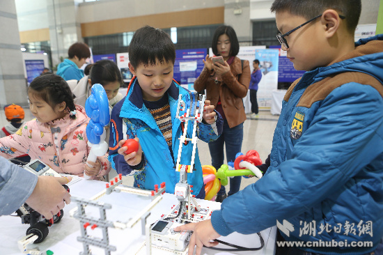 東湖創(chuàng)客匯現(xiàn)場,機(jī)器人吸引了小朋友的參與