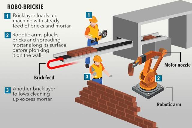 砌墻絕對(duì)是工地上的技術(shù)活,不過幾個(gè)月內(nèi),砌墻機(jī)器人就將“降臨”許多英國(guó)工地,讓曾經(jīng)的能工巧匠失業(yè)。這個(gè)砌墻機(jī)器人名為“半自動(dòng)石工”(SAM),它效率超高,每天能砌3000塊磚,而一個(gè)熟練的砌墻工人通常一天只能砌500塊。