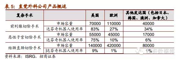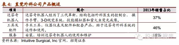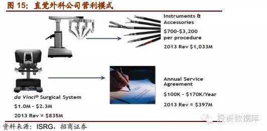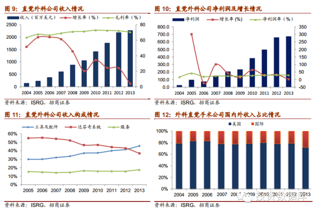 直覺外科公司是全球領(lǐng)先的微創(chuàng)機(jī)器人輔助手術(shù)機(jī)器人公司,2013年?duì)I收達(dá)22.65億美元,截止2014年第一季度達(dá)芬奇機(jī)器人累計(jì)銷售數(shù)量為3039臺,2014年8月總市值達(dá)159.60億美元。