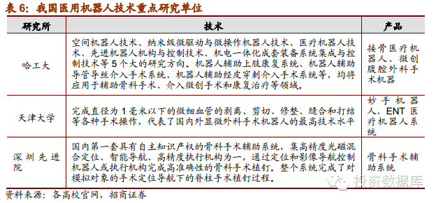 ?。?)國內(nèi)重點(diǎn)醫(yī)用機(jī)器人公司/研究機(jī)構(gòu):醫(yī)療技術(shù)商業(yè)化有待提高