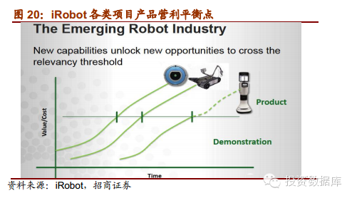 iRobot的產(chǎn)品戰(zhàn)略布局以家居清潔機器人為主。家居清潔機器人所需投入成本較其它產(chǎn)品低,最早成為現(xiàn)金牛,為新研發(fā)的更高級產(chǎn)品提供資金支持。目前遠程視頻機器人成功研制,開始進入營銷階段。