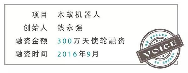 2016年9月,木蟻機(jī)器人獲得300萬天使輪融資。