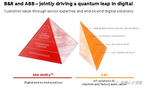 “B&R是全球機(jī)器和工廠自動化領(lǐng)域的一顆寶石,這次并購是一個千載難逢的機(jī)會。這筆交易將是ABB一個真正的里程碑標(biāo)志。B&R將彌補(bǔ)ABB在機(jī)器和工廠自動化的歷史差距。這是一個完美的配合,將使我們成為在測量、控制、驅(qū)動、機(jī)器人技術(shù)、數(shù)字化和電氣化方面為客戶提供全方位的技術(shù)和軟件解決方案的唯一工業(yè)自動化供應(yīng)商”ABB首席執(zhí)行官Ulrich Spiesshofer說,“這次收購?fù)昝赖靥峁┝宋覀兊南乱患墤?zhàn)略。我們獨(dú)特的數(shù)字產(chǎn)品組合和安裝超過7000萬個的連接設(shè)備、70000套控制系統(tǒng),以及在全球超過300萬臺自動化機(jī)器和27000個工廠設(shè)施,使我們的全球客戶基礎(chǔ)相結(jié)合,抓住第四次工業(yè)革命的巨大機(jī)遇。”